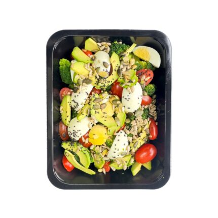 Lekka, ale sycąca pozycja, która łączy różyczki brokuła z gotowanym jajem, świeżym awokado i delikatnym sosem. Cena dotyczy opakowania 700g.